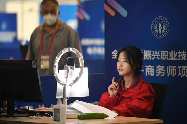 2021年9月26日,选手在乌鲁木齐举办的全国乡村振兴职业技能大赛上比拼电子商务师项目。 新华社记者 王菲 摄