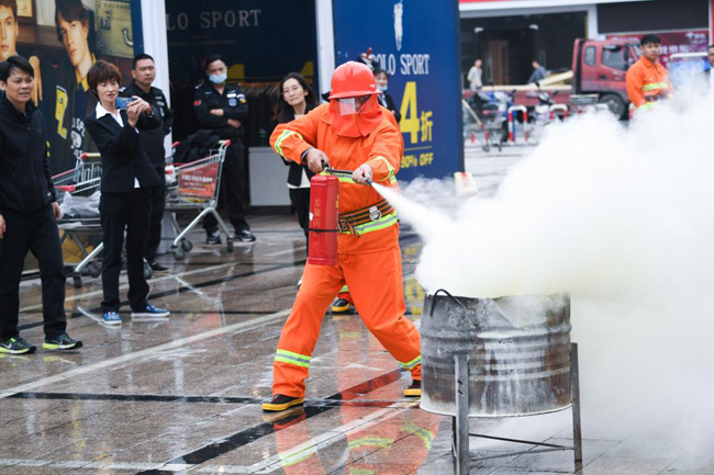 2021年11月2日,浙江省湖州市龙泉街道举办2021年度微型消防站技能比赛,工作人员正在比赛“接力灭火”。 新华社记者 徐昱 摄