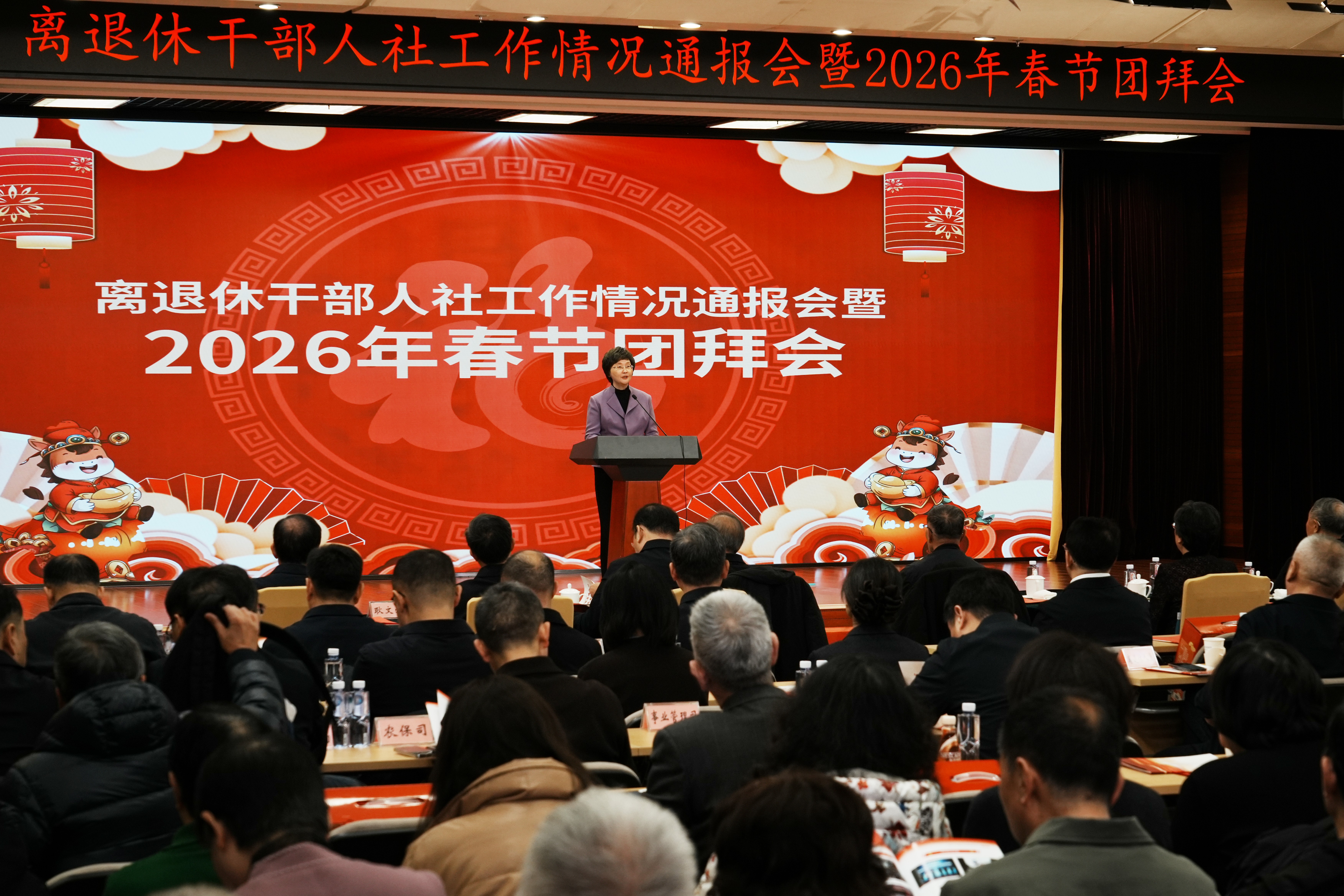 2月10日,人力资源社会保障部举办离退休干部人社工作情况通报会暨2026年春节团拜会。部党组书记、部长王晓萍代表部党组向老领导、老同志和部广大离退休干部致以诚挚问候和新春祝福。部党组成员、部级老领导出席活动。