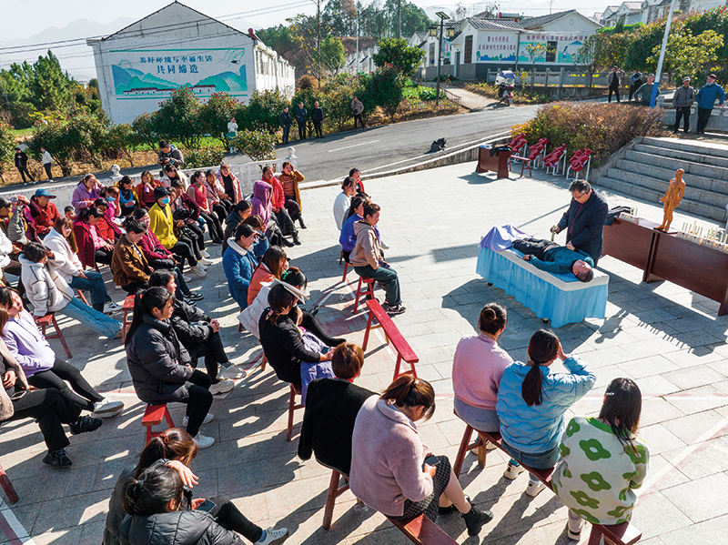 中医艾灸师为湖北省蕲春县青石镇大屋村村民讲授艾灸技法(2023年12月7日摄) 肖艺九摄/本刊