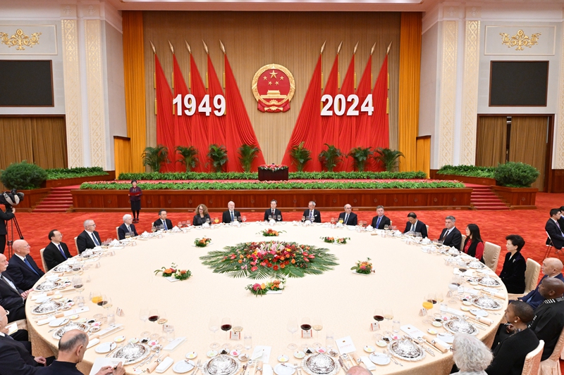 9月27日晚,庆祝中华人民共和国成立75周年外国专家招待会在北京人民大会堂举行,中共中央政治局常委、国务院副总理丁薛祥出席并致辞。新华社记者 李响 摄