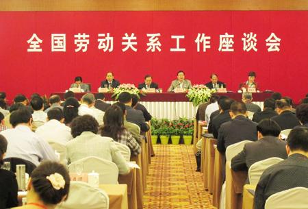2011年4月18日至19日,全国劳动关系工作座谈会在浙江杭州召开。会议的主要任务是深入贯彻党的十七届五中全会、中央经济工作会议和今年全国 “两会”精神,认真落实全国人力资源社会保障工作会议的部署,总结去年以来劳动关系工作取得的新进展,回顾 “十一五”时期的工作,分析 “十二五”时期的形势任务,进一步研究落实今年的主要工作,学习借鉴浙江经验,努力推动劳动关系事业实现新发展。人力资源社会保障部副部长杨志明出席会议并讲话,浙江省副省长陈加元致辞。