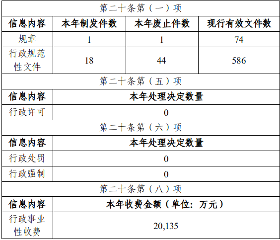 (三)政府信息管理方面。进一步完善人社法律制度,提高政策发布质量,对现行有效的政策文件进行全面清理。持续做好部规章库、行政规范性文件库动态更新,在部门户网站集中发布人社领域现行有效规章74个,关于规章的修改、废止决定18个,发布现行有效行政规范性文件586个。建立健全政府信息公开期限及定期清理制度,加强已公开政府信息管理,定期清理过时、失效信息,切实增强政府信息供给的有效性。